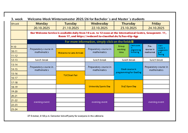 Welcome Weeks schedule winter semester 2025/26- 3rd week
